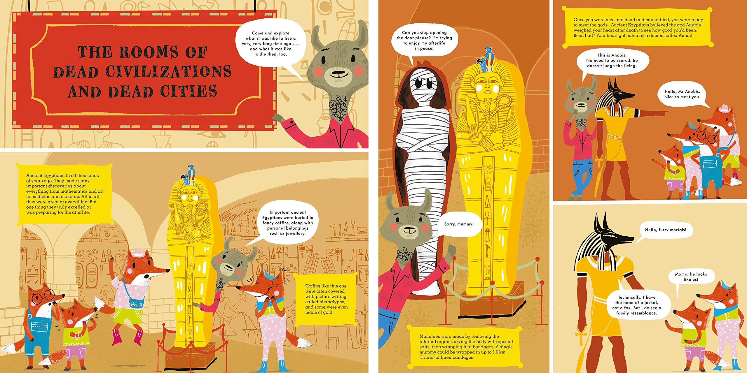 The Big Book of Dead Things is a funny, stylishly-illustrated non-fiction guide to all things dead and gone. The stylish illustrations and engaging animal characters bring a broad range of topics alive, from dinosaurs and prehistoric animals to astronomy and ancient history. Meet Ancient Egyptian mummies and learn their secrets; romp through prehistoric worlds with dinosaurs, and learn all about the death of stars.
