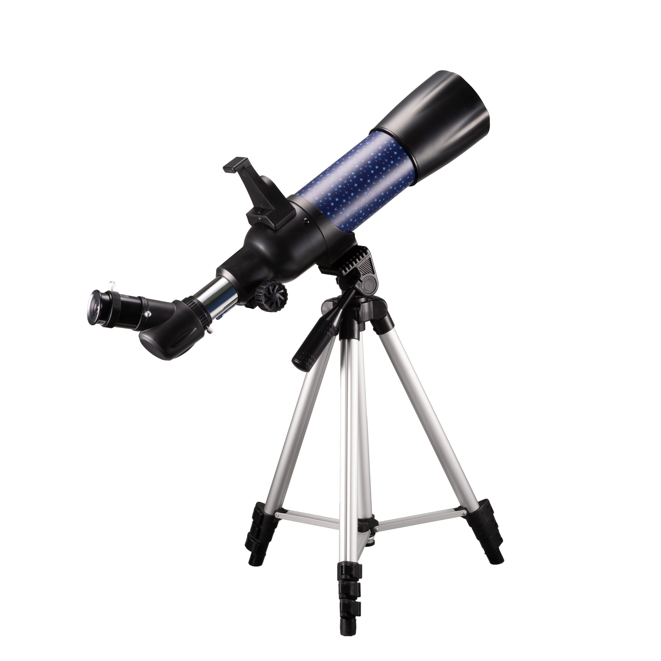 Thanks to the 3 different eyepieces with 20x, 50x and 100x magnification, you can quite literally reach for the stars. If that’s not enough, you can use the Barlow lens to triple each magnification level. The set also comes with a great accessory to introduce you to the world of astrophotography: With the eyepiece smartphone adapter, you can take stunning photos of the moon, planets and other celestial objects and share your discoveries from the night sky with your parents, siblings or friends.