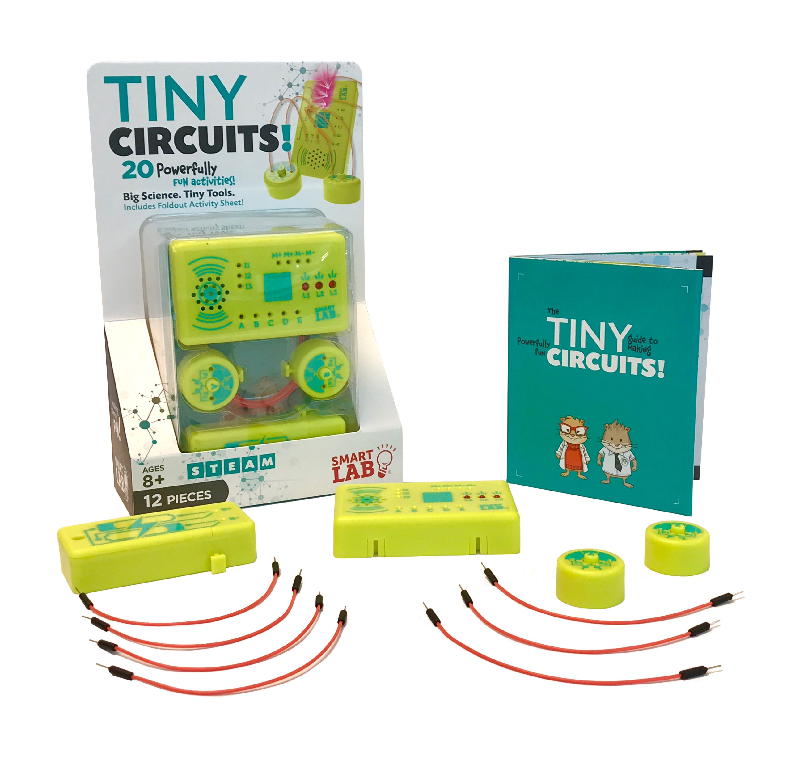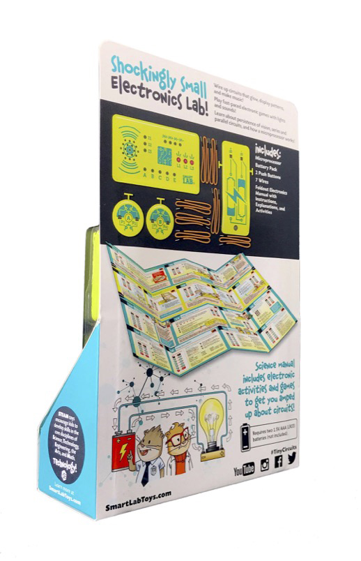“Get amped up about itty-bitty electronics! This miniaturized version of our best-selling Smart Circuits kit lets you build gadgets, create funny sound effects, and play fast-paced electronic games with lights and sounds!